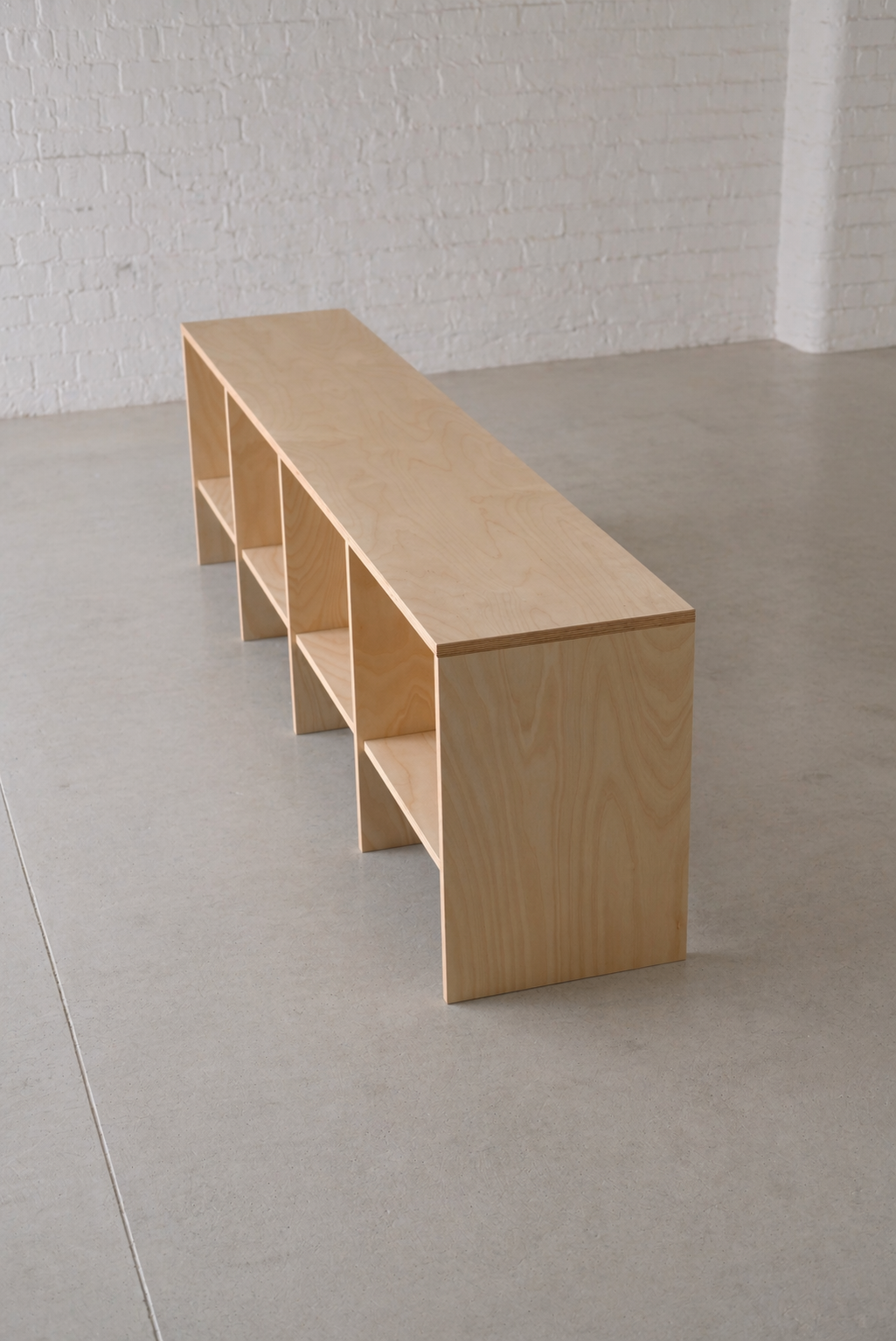 A longer unit suited to larger rooms. Works well as a full-length media cabinet, with proportions that also suit vinyl record storage.
